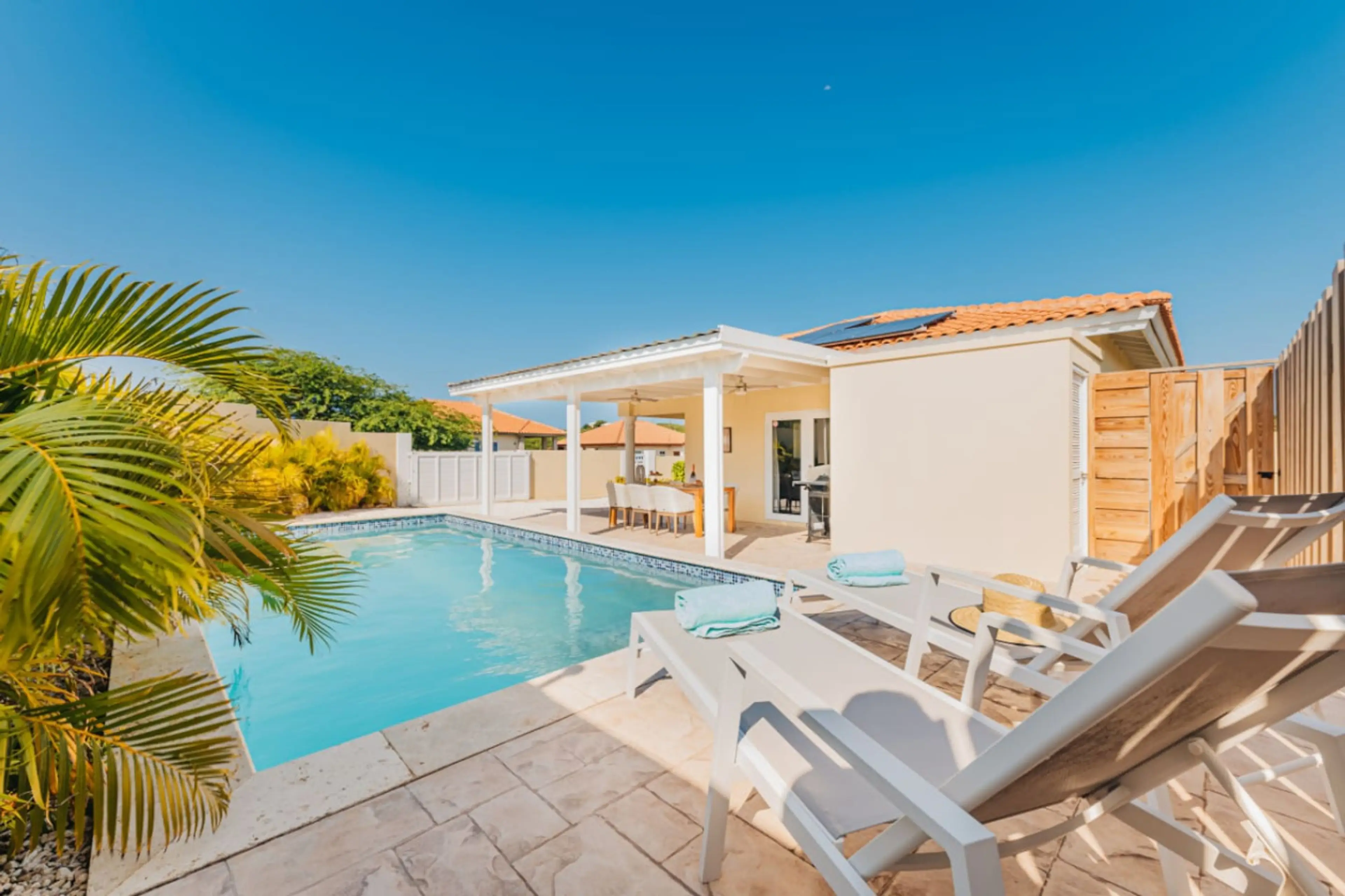 Discover our ideally authentic residence in Aruba's, near Palm Beach. Enjoy the lively ambiance, explore delightful restaurants and shops, or relish a quick beach getaway, only minutes away. 🏖️ 3 min Drive to Palm and Eagle Beach 🛌 2 Bedrooms with 2 Ensuite Bathrooms 🌿 Private Outdoors Retreat w...